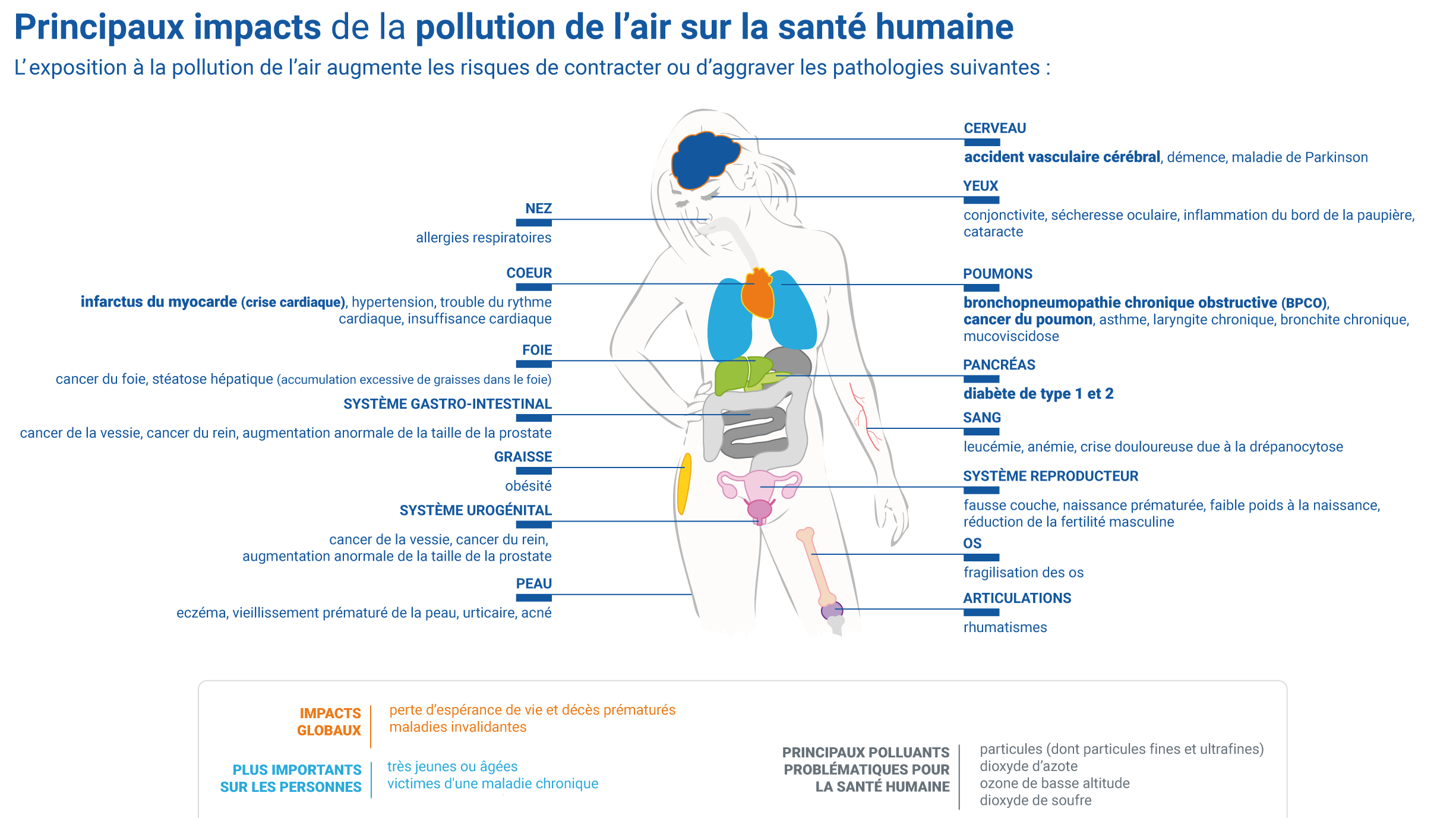 Les maladies suivantes sont associées à l’exposition aux particules fines :